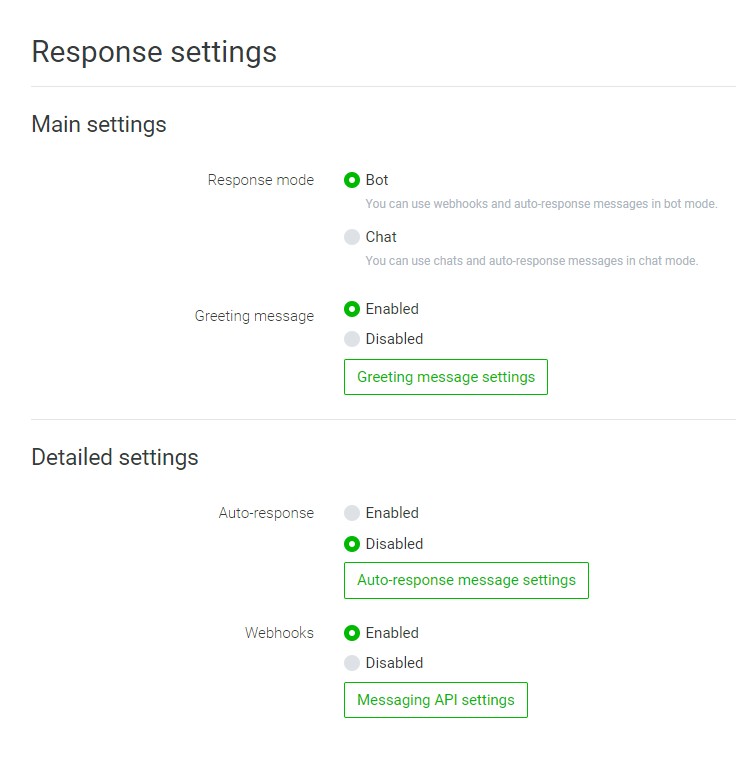 - Response mode must be set to to Bot .
