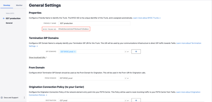 Configuring Elastic SIP Trunking as a Twilio BYOC Trunk